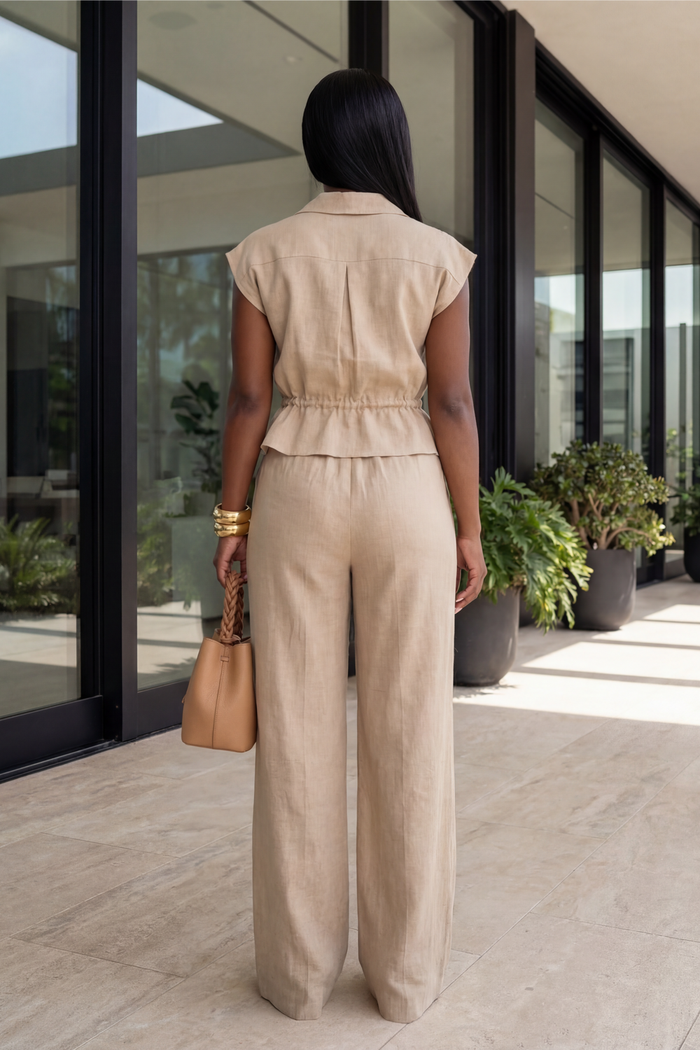 Golden Aura Strapless Pant & Hair scarf set [Textured Camel]