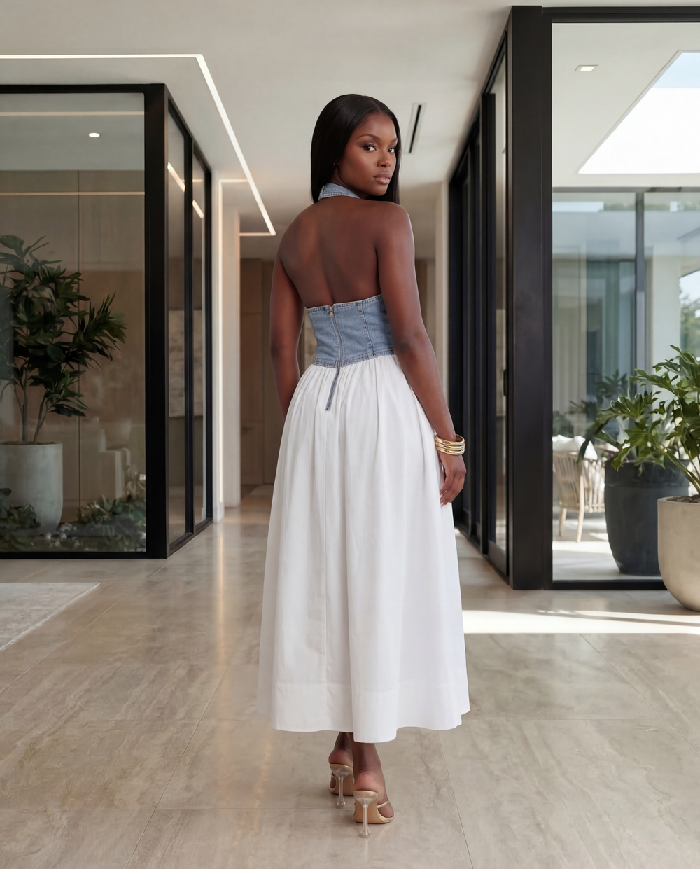 Denim Romance Midi Dress [Denim & White]
