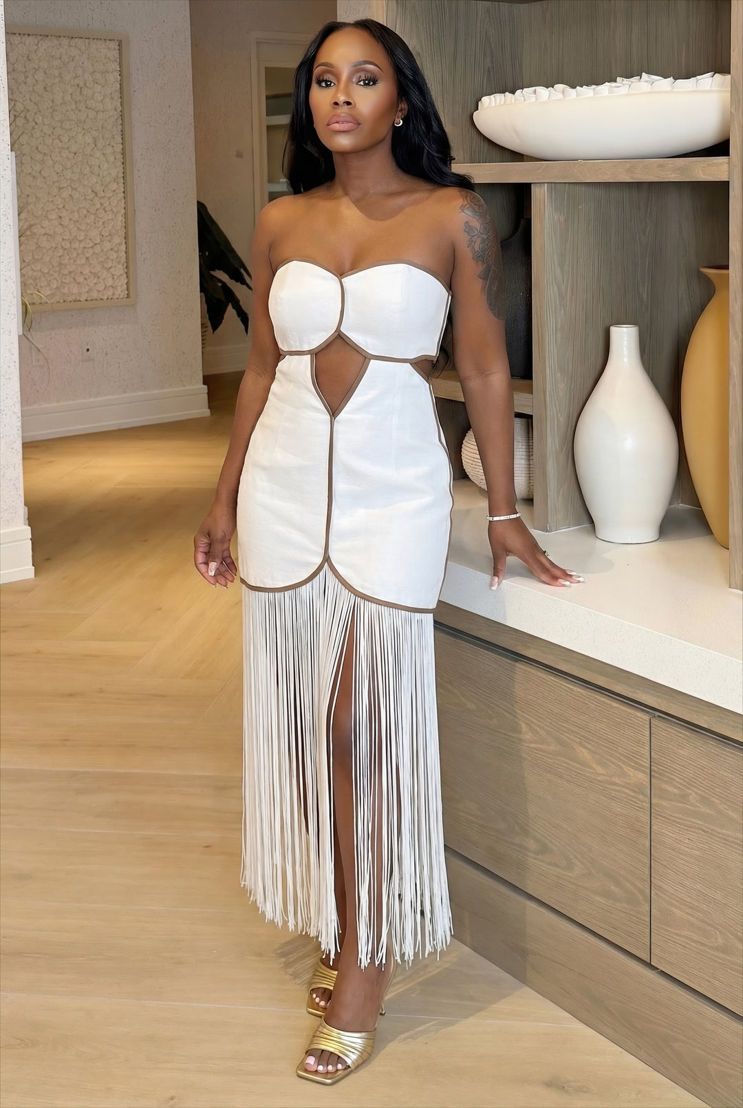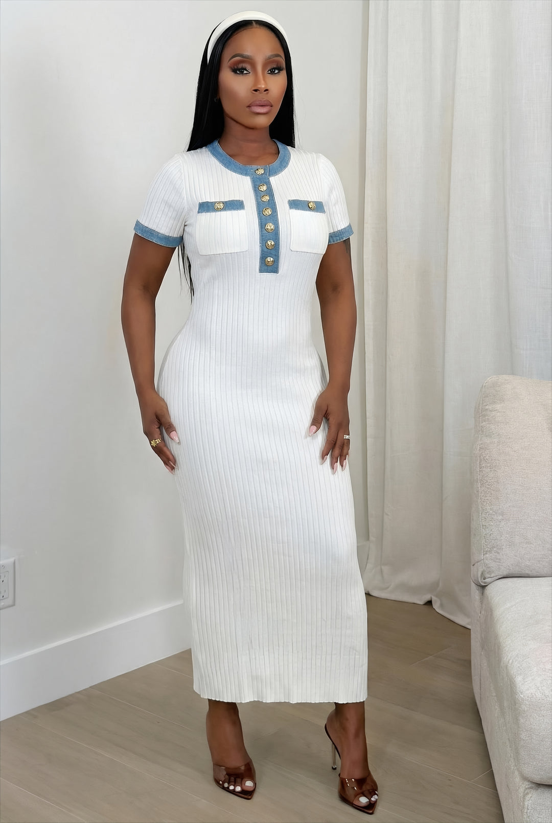 Coastal Charm Knit Midi Dress [Ivory/Denim Trim]